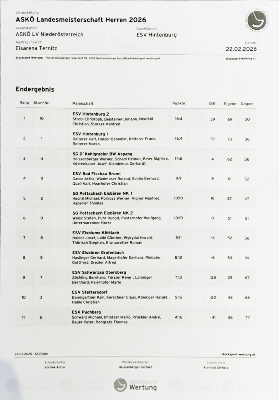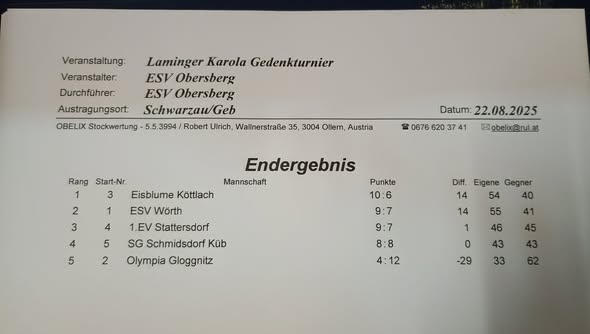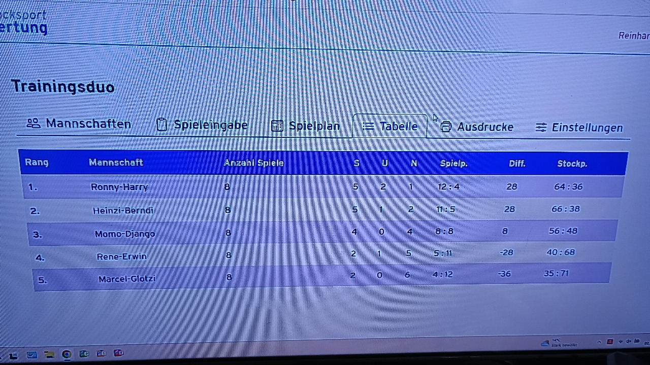 Dank besseren Stockpunkte konnte ein Sieg eingefahren werden.Gratulation an Gerlinde,Angela,Hubsi,Marcel und Momo
