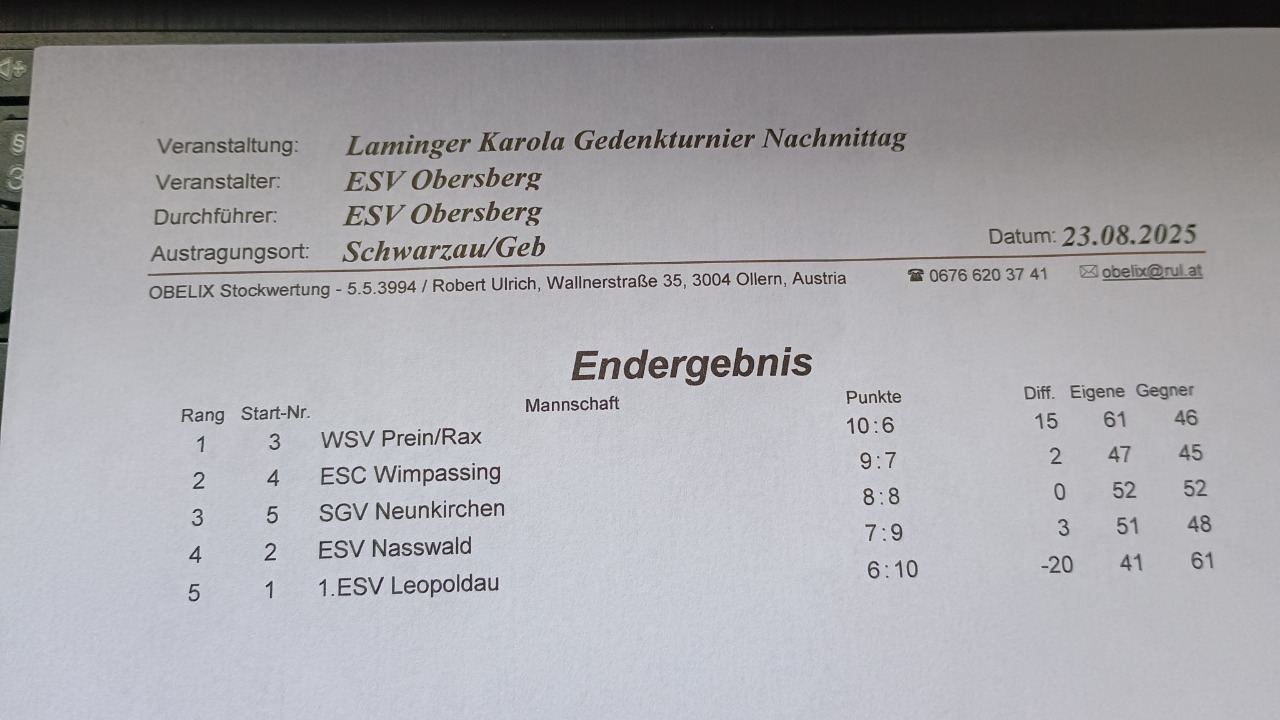 Turnier ESV Schwarzau Obersberg 2025
